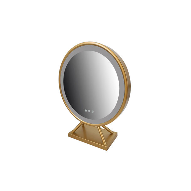 آینه جزو وسایلی است که همیشه مورد توجه خانم ها بوده و می توان گفت از جمله لوازم ضروری است که در هر خانه ای بر روی میز آرایش بانوان قرار دارد. این وسیله با توجه به اهمیت خود در مدل های مختلف رومیزی،قدی،چراغ دار و … طراحی و روانه بازار می شود. از نمونه های جدید آینه می توان به طراحی آینه های رومیزی اشاره کرد که خود داری چراغ ال ای دی و یا حلقه رینگ لایت است و می تواند نور مناسب برای میکاپ و آرایش را فراهم کند. آینه رومیزی آرایشی 4040 از جنس فلز به رنگ طلایی و با قطر 40 سانتی متر،ساختاری دایره ای دارد.دورتادور این آینه رینگ لایتی قرار دارد تا نور کافی برای کاربر را حین استفاده از آینه فراهم کند.بر روی صفحه ی اصلی آینه 3 دکمه ی لمسی طراحی شده تا به کمک آن ها بتوانید نور آینه را روشن و خاموش کرده و حتی رنگ آن را از نور گرم به نور مهتابی تغییر دهید.همچنین امکان تنظیم قدرت نور در این مدل نیز وجود دارد.کاربر می تواند میزان نور خروجی رینگ لایت را با توجه به نور محیطی خود تنظیم نماید.این مدل بر روی پایه ای با سطح مقطع مستطیلی قرار دارد که کاملا پایدار و محکم است. این آینه با ظاهری فوق العاده شیک و جذاب مناسب استفاده بر روی میز آرایش بانوان است که تنها از طریق آداپتور همراه به برق وصل شده و قابل استفاده می باشد.