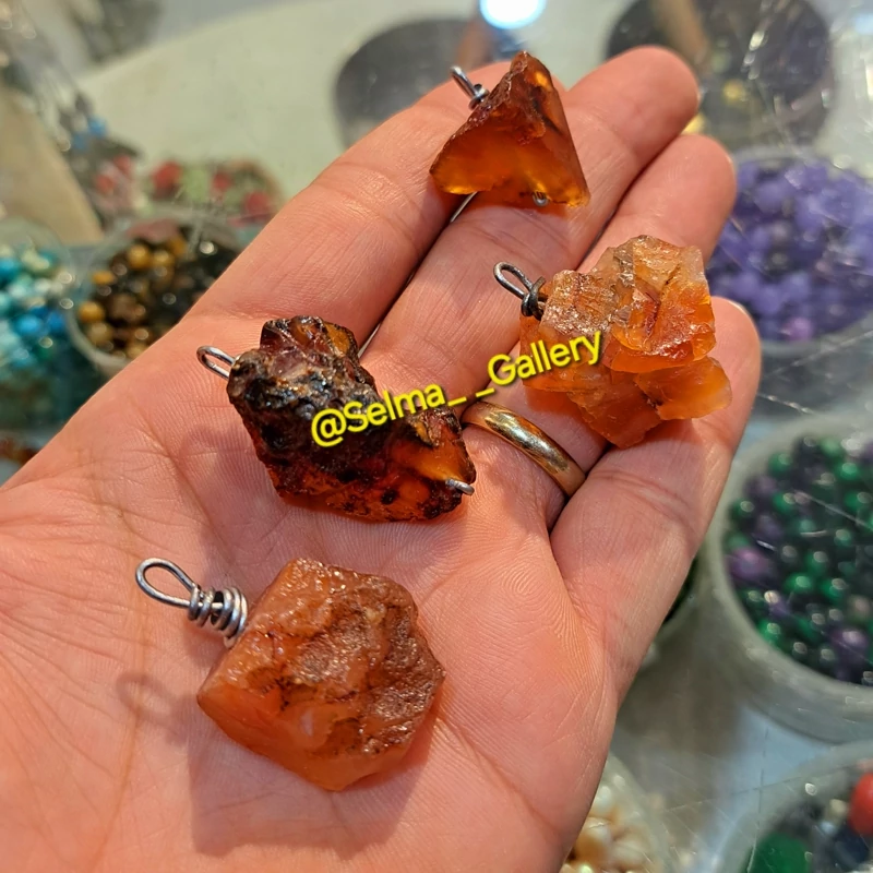 آویز راف کارنلین برزیل اصل متوسط گردنبند کارنلین دو رنگ طبیعی اویز راف کارنلین معدنی اویز راف عقیق کارنلین خرید کارنلین