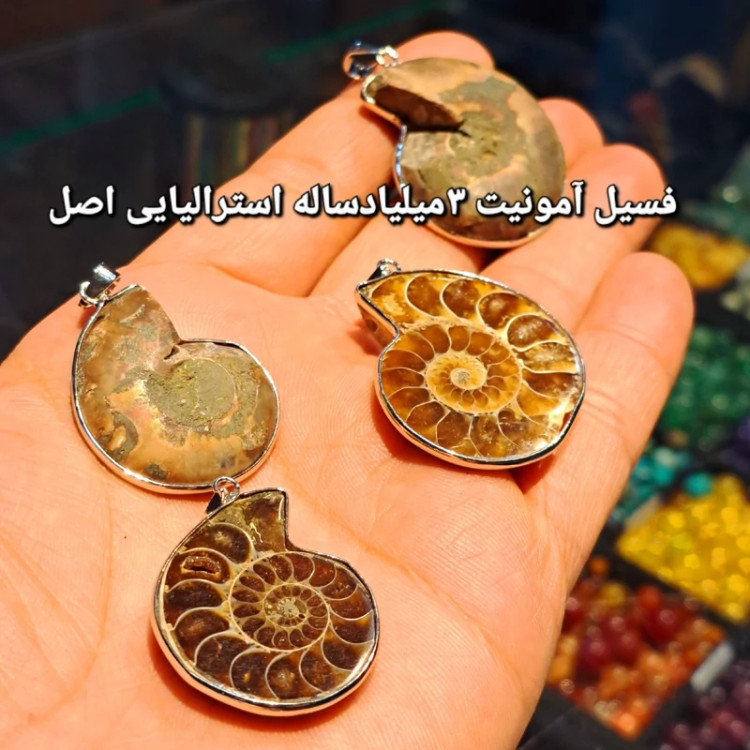 آویز فسیل آمونیت اصل اویز امونیت اصلی اویز حلزون امونیت پلاک امونیت طبیعی فسیل حلزون معدنی فروشگاه سنگ امونیت استرالیا
