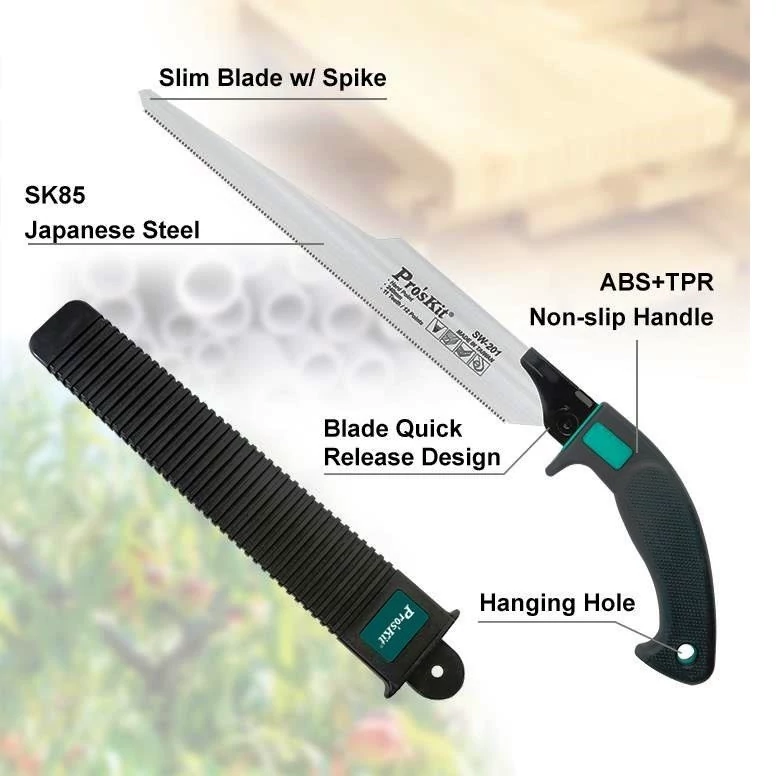 اره پروسکیت مدل SW-201 یک ابزار چندمنظوره و قدرتمند برای برش انواع مواد مانند چوب، پلاستیک، PVC و فلزات نرم است. این اره با تیغهای از جنس فولاد ژاپنی SK85 و دندانههای سهلبه (3-Edge Grinding Teeth) با سختی HRC 50±2 طراحی شده که برشهای تمیز و سریع را تضمین میکند. تیغه با فناوری سختکاری импульсная (Impulse-Hardened) تولید شده که دوام و عمر مفید آن را افزایش میدهد. دسته ارگونومیک از جنس ABS و TPR (ترموپلاستیک رابر) ضد لغزش و ضد تعریق است و راحتی را در استفاده طولانیمدت فراهم میکند. این اره همراه با غلاف پلاستیکی برای ایمنی و جلوگیری از آسیب به تیغه عرضه میشود. مناسب برای باغبانی، نجاری، پروژههای DIY و کاربردهای صنعتی سبک.