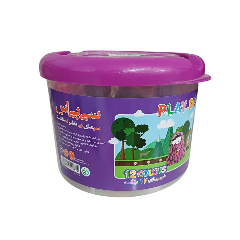 ۱۲ رنگ خمیر ۲۲ گرمی، سفره، 2 عدد ابزار، سرنگ کوچک، ست قالب سرنگ، ۲ عدد قالب برشی 1 عدد قالب حیوان