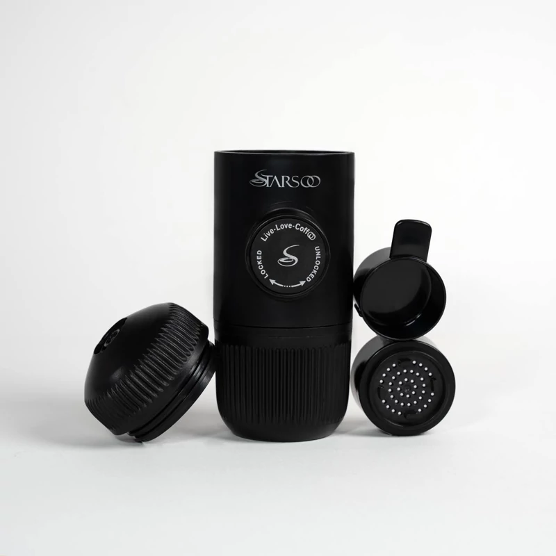 اسپرسوساز سفری استارسو مدل Nanopresso یک دستگاه قهوه ساز کوچک و همراه است که بدون نیاز به برق یا باتری، تنها با استفاده از یک پمپ دستی فشار ایجاد میکند تا آب جوش را از قهوه عبور دهد و قهوه اسپرسو درست کند. این دستگاه به لطف ابعاد کوچک و بدنه پلاستیکی، قابل حمل است.