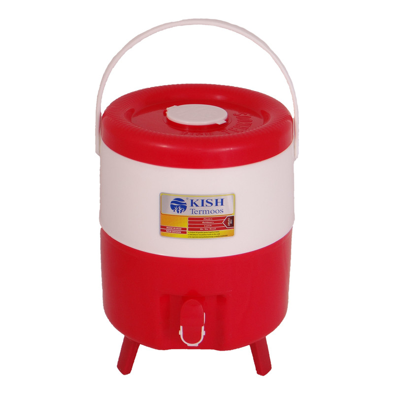 کلمن آب و یخدان سفری 10 لیتر کیش ترموس - لیوان دار و دارای پایه نگهدارنده - دارای شیر و قابل استفاده به عنوان خنک نگهدارنده انواع نوشیدنی - نگهداری طولانی مدت یخ و سرما - مناسب سفر و کمپینگ و همچنین استفاده در منزل